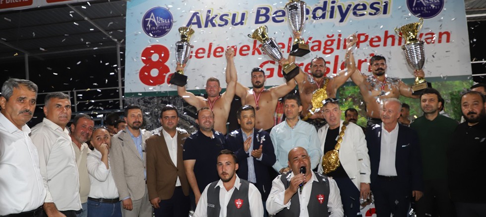 Aksu Belediyesi geleneksel yağlı pehlivan güreşlerinin bu yıl 8.si düzenlendi. Yüzlerce kişinin katılımıyla yapılan yağlı pehlivan güreşlerine bine yakın sporcu katıldı. Kıran kırana geçen güreşleri finalde Cengizhan Şimşek ile güreşen Mehmet Yeşil Yeşil kazanarak altın kemerin sahibi oldu.