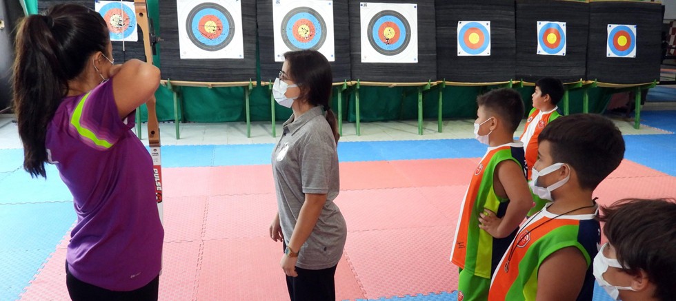 Kepez Belediyesi Spor Kulübü Güreş Takımı sporcuları, diğer spor disiplinleri ile tanışıyor. Güreş Antrenörü Meral Kaya, sporcularını Okçuluk Antrenörü İleyda Keleştemur’dan özel ders alması için Turgut Özal Spor Salonu’na götürdü. Çeşitli yaş kategorilerindeki güreşçiler, yayı en yumuşak olan oklar ile 3’er atış yaptı.