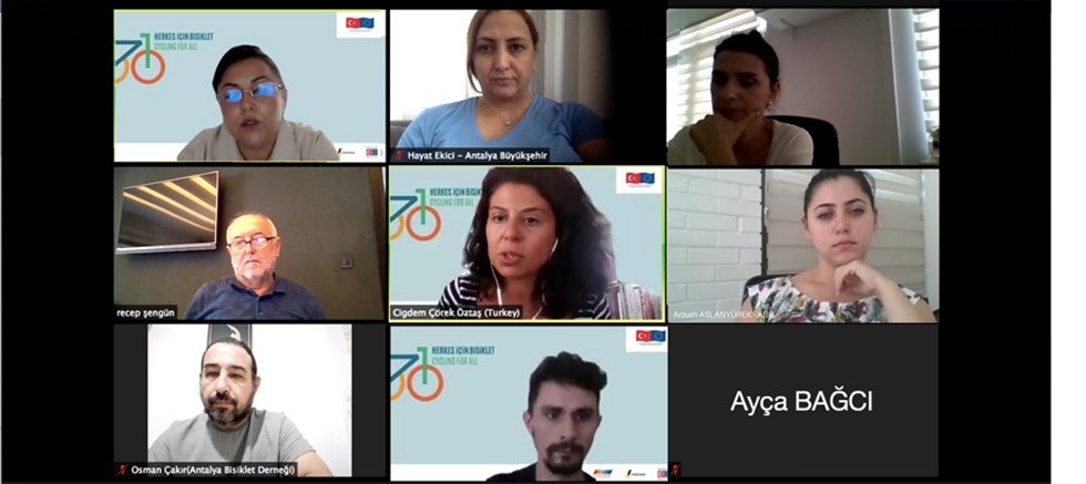 Çevrimiçi olarak gerçekleştirilen mentörlük görüşmesine Antalya Büyükşehir Belediyesi Gençlik ve Spor Hizmetleri Dairesi Başkanlığı ve Ulaşım Planlama ve Raylı Sistemler Dairesi Başkanlığı’ndan projede görevli personeller ile projenin Antalya paydaşları olan Antalya Kent Konseyi ve Antalya Bisiklet Derneği’nden (ANTBİSDER) ilgili kişiler katıldı.