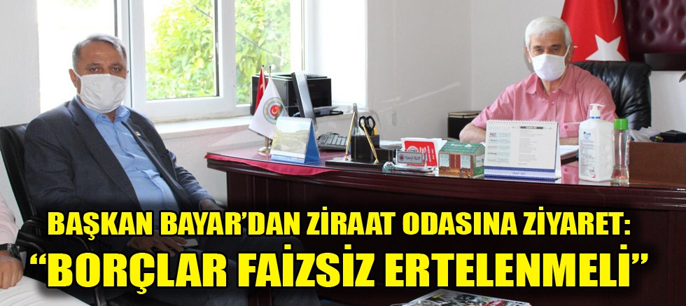 Cumhuriyet Halk Partisi Antalya İl Başkanı Nusret Bayar, Muratpaşa Ziraat Odası Başkanı Nazif Alp’i ziyaret ederek tarımın ve çiftçinin sorunları hakkında konuştu. Başkan Bayar, “Hükümet faiz koparma peşine düşmemeli, borçlar faizsiz ertelenmeli” dedi.