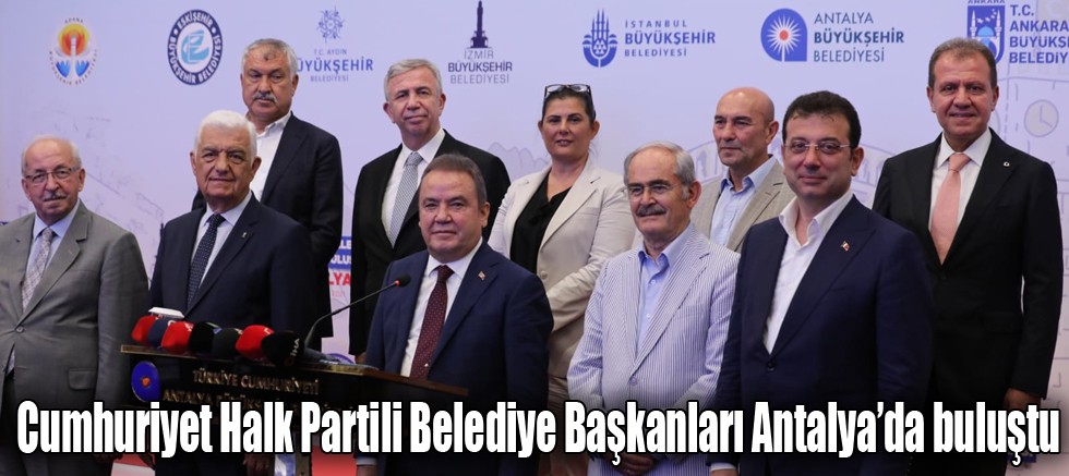 Cumhuriyet Halk Partili büyükşehir belediye başkanları, Antalya Büyükşehir Belediye Başkanı Muhittin Böcek ev sahipliğinde Antalya’da buluştu. Pandemiyle mücadele, turizm, ekonomi ve Cumhurbaşkanlığı tasarruf genelgesi başta olmak üzere pek çok konunun ele alındığı toplantı sonrası Başkan Muhittin Böcek tarafından sonuç bildirgesi okundu. Bildiride, “Türkiye’nin içinde bulunduğu ekonomik, siyasal krizlere rağmen 11 büyükşehir belediye başkanı olarak canla başla çalışmaya devam edeceğiz. Tüm engellemelere karşın umudu çoğaltarak vatandaşlarımızın derdine derman olacağız” ifadelerine yer verildi.