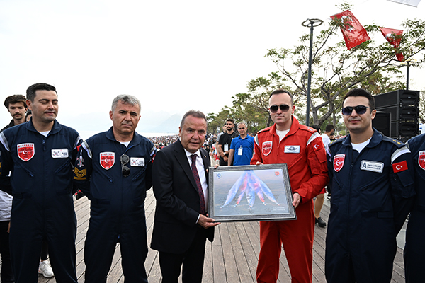 Gösteri uçuşunda pilotlar akrobatik hareketlere imza atarken vatandaşlar gösteriyi nefeslerini tutarak izledi. Zorlu manevraları ustalıkla yapan Türk Yıldızları pilotlarını alkış yağmuruna tutan binlerce Antalyalı, unutulmaz gösteriyi gururla izlerken, cep telefonları ile bu anları kaydetti. Antalya Valisi Hulusi Şahin, Büyükşehir Belediye Başkanı Muhittin Böcek ve Antalya İl Emniyet Müdürü Orhan Çevik Türk Yıldızları gösterisini, ellerinde Türk Bayrakları ve vatandaşlarla birlikte Konyaaltı Sahili’nde izledi.