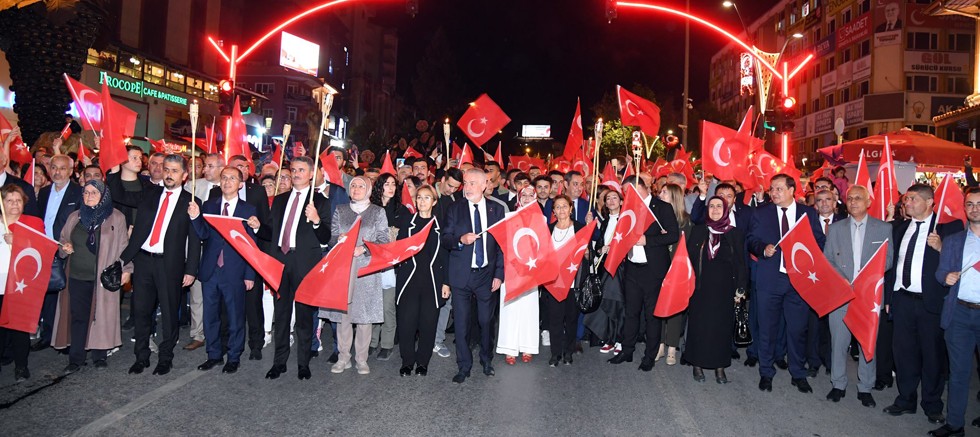 Isparta Valiliği ve Isparta Belediye Başkanlığının Cumhuriyetin 100’üncü yılı ve 29 Ekim Cumhuriyet Bayramı dolayısıyla düzenlediği Fener Alayı Bayrak Yürüyüşünde binlerce vatandaş ellerine aldıkları Türk Bayrakları ve yaktıkları meşalelerle bayram coşkusunu doyasıya yaşadı.