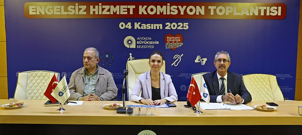 Antalya Büyükşehir Belediyesi Engelsiz Hizmet Komisyonu 2025 yılı toplantısına Büyükşehir Belediyesi Genel Sekreter Yardımcısı Vekili Dr. Çiğdem Hacıoğlu, Başkan Danışmanı Mehmet Karavural, Büyükşehir Belediyesi Engelli Hizmetleri Şube Müdürü Fatin Iltar, daire başkanları, üniversiteler, kamu kurumları, STK'lar, meslek odaları, ilçe belediyeleri ile ilgili daire başkanlıklarının temsilcileri katıldı.