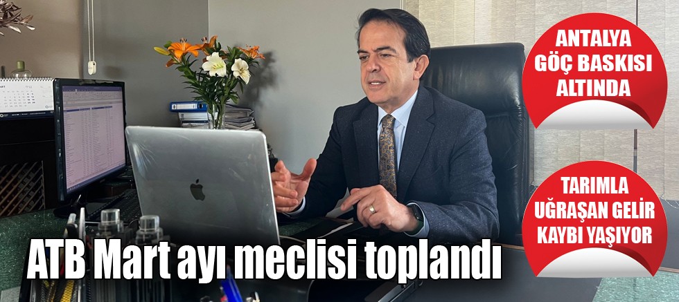 Antalya Ticaret Borsası (ATB) Mart Ayı Meclis Toplantısı, Erdoğan Ekinci başkanlığında çevrimiçi yapıldı. ATB Yönetiminin bir aylık çalışmasıyla ilgili üyelerin bilgilendirildiği Meclis’te, ATB Yönetim Kurulu Başkanı Ali Çandır, tarım, ekonomi ve gündeme ilişkin değerlendirmelerde bulundu.