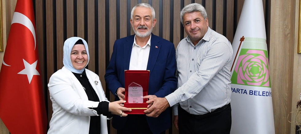 Antalya Elmalı İlçe Tarım ve Orman Müdürü Dilek Boğatimur ve Elmalı Eskihisar Tarımsal Kalkınma Kooperatifi Başkanı ve Mahalle Muhtarı Ali Çankırlı, 28-29 Temmuz tarihleri arasında Eskihisar’da gerçekleştirilen 1.Domates Festivaline mehteran ekibini göndermesinden dolayı Isparta Belediye Başkanı Şükrü Başdeğirmen’i ziyaret ederek, plaket takdim etti.