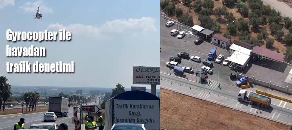 Trafiğin yoğun olduğu Aksu, Döşemealtı, Elmalı, Korkuteli yollarında havadan denetimler yapılarak kazaların ve kaza sonrası ölüm ve yaralanmaların en önde gelen sebeplerinden olan emniyet kemeri, şerit ihlali, ana yol üzerinde hatalı parklar ve agresif sürücüler gyrocopterde bulunan gelişmiş kamera sistemi ile havadan tespit edilerek, denetim noktalarında bulunan Trafik Jandarması ekiplerine bildirilmiştir.