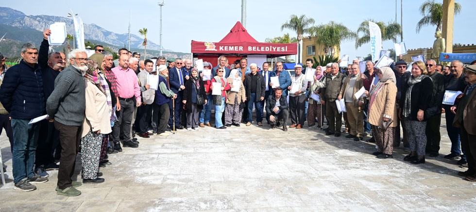Kemer’in Tekirova Mahallesi’nde yaşayan vatandaşların 37 yıllık tapu hasreti sona erdi. Kemer Belediye Başkanı Necati Topaloğlu, 37 yıl sonra hak sahiplerine düzenlenen törenle tapularını dağıttı.