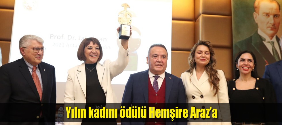 Antalya Tanıtım Vakfı (ATAV) bünyesindeki Antalya Kadın Müzesince Jale İnan 2021 Yılın Kadını Ödülü’nü, Yardım Gönüllüleri Eğitim ve Proje Derneği Başkanı emekli hemşire Umut Araz, Antalya Büyükşehir Belediye Başkanı Muhittin Böcek’in elinden aldı.
