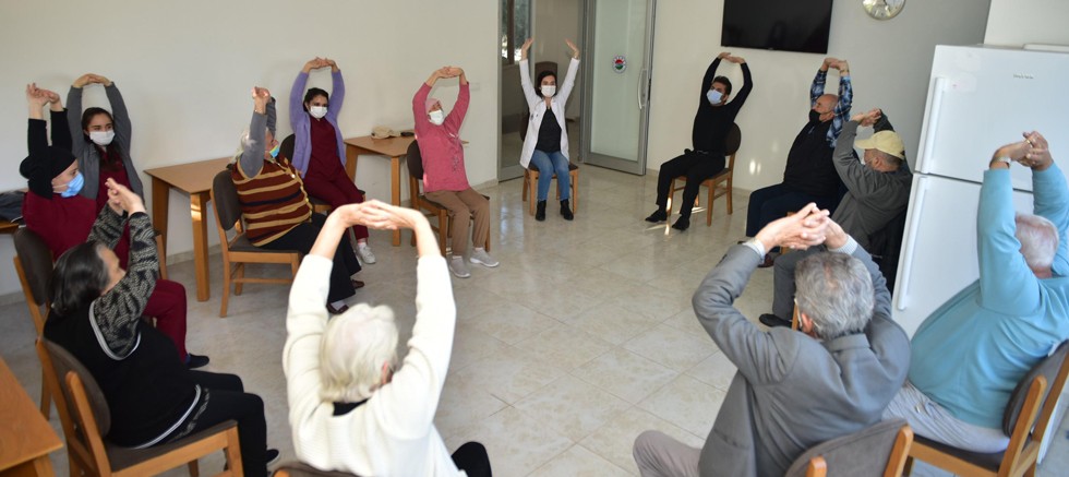 Kepez Belediyesi’nin Şefkat ve Huzurevi sakinleri sağlıklı yaşam için güne spor yaparak başlıyor.