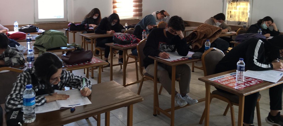 Kursta eğitim alan öğrenciler, pandemi kurallarına uyarak deneme sınavına girerek, kendilerini sınama imkanı buldu.