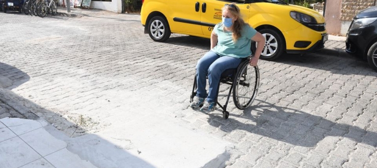 Kemer Belediyesi ekipleri, ilçede yaşayan bedensel engelli Figen Yıldırım’ın evinin önüne engelli rampası yaptı.