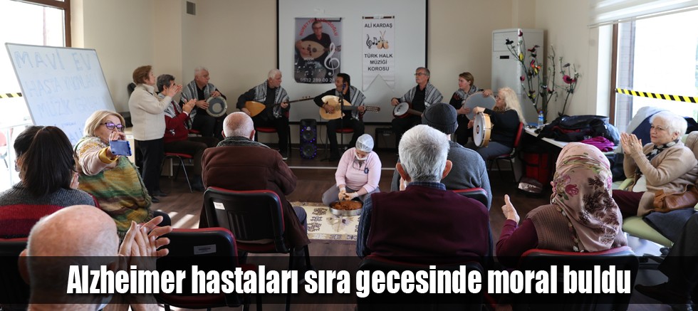Antalya Büyükşehir Belediyesi, Sosyal Hizmetler Dairesi Başkanlığına bağlı Alzheimer Hasta ve Hasta Yakınları Buluşma Merkezi’nin (Mavi Ev) misafirleri sosyal ve kültürel aktivitelerle hem moral buluyor hem de terapi yapılıyor. Mavi Ev’de, müzisyen Nurettin Dabağoğlu. sanatçı Ali Kardaş ve Türk Halk Müziği Korusu eşliğinde sıra gecesi düzenlendi.