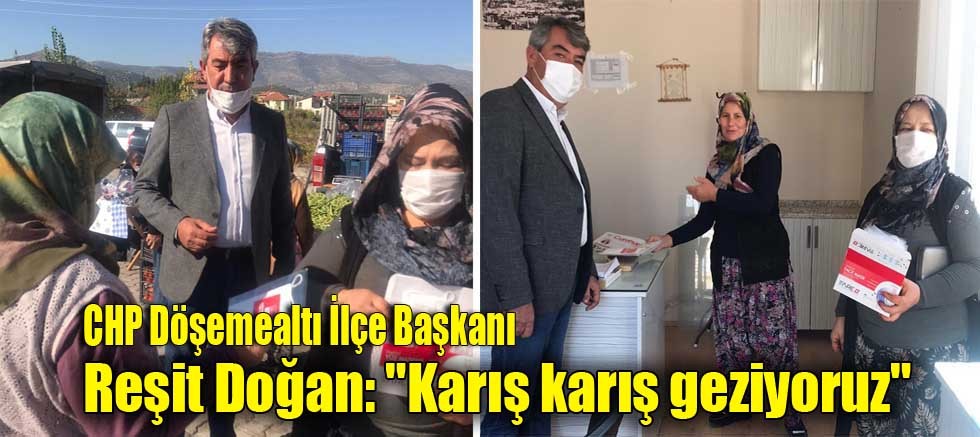 CHP Döşemealtı İlçe Başkanı Reşit Doğan ve yönetim kurulu üyeleri ile partililer sabah saatlerinde önce pazar yerinde hem alışverişe gelen vatandaşlara, hem de esnafa maske ve kalem dağıtımı yaptı. Ardından ilçe esnafını gezen partililer burada sohbet edip sorunları dinleyerek çözüm için çalışma yapacaklarını söyledi.