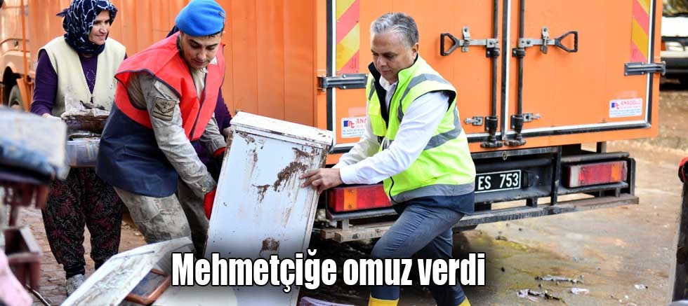 Muratpaşa Belediye Başkanı Ümit Uysal, adeta bir çamur deryasına dönen Kumluca’da, temizlik çalışmalarına katılan Mehmetçiğe omuz verdi. Askerlerin selden zarar gören bir esnafın dükkanı boşalttığını gören Uysal, eşyaların taşınmasına yardım etti.