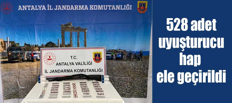 Gerçekleştirdikleri başarılı operasyonlarla uyuşturucu madde imal ve ticaretine geçit vermeyen Antalya Valiliği İl Jandarma Komutanlığı ekipleri, yaptıkları çalışmalar sonucu gerçekleştirdikleri operasyonda 528 adet uyuşturucu hap ele geçirdi.
