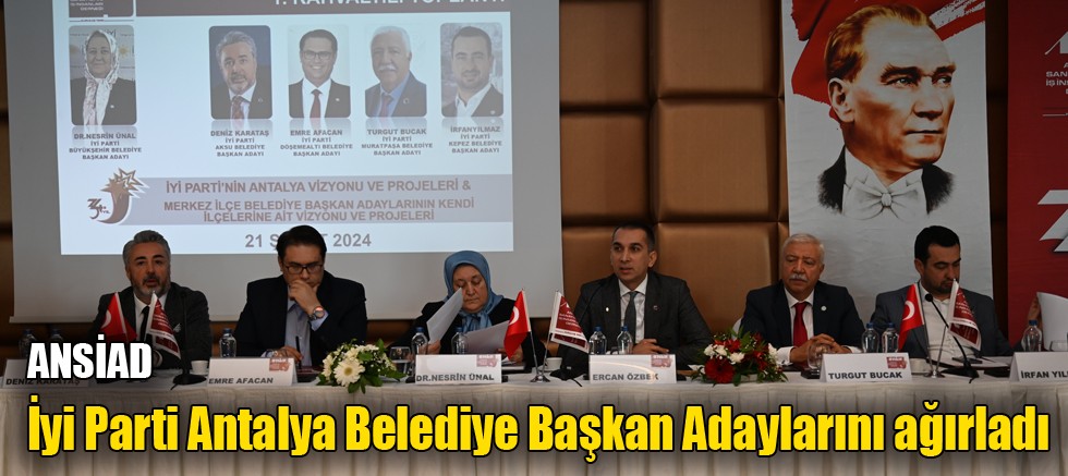 İyi Parti Antalya İl Başkanı Vahdet Afşin Karacan, İyi Parti Antalya Büyükşehir Belediye Başkan Adayı Uzm. Dr. Nesrin Ünal, İyi Parti Aksu Belediye Başkan Adayı Deniz Karataş, İyi Parti Döşemealtı Belediye Başkan Adayı Emre Afacan, İyi Parti Muratpaşa Belediye Başkan Adayı Turgut Bucak ve İyi Parti Kepez Belediye Başkan Adayı İrfan Yılmaz, 21 Şubat 2024 Çarşamba günü Akra Otel’de düzenlenen Antalya Sanayici ve İş İnsanları Derneği (ANSİAD) 2024 yılı 1. Kahvaltılı Toplantısı’nın konuğu oldu.