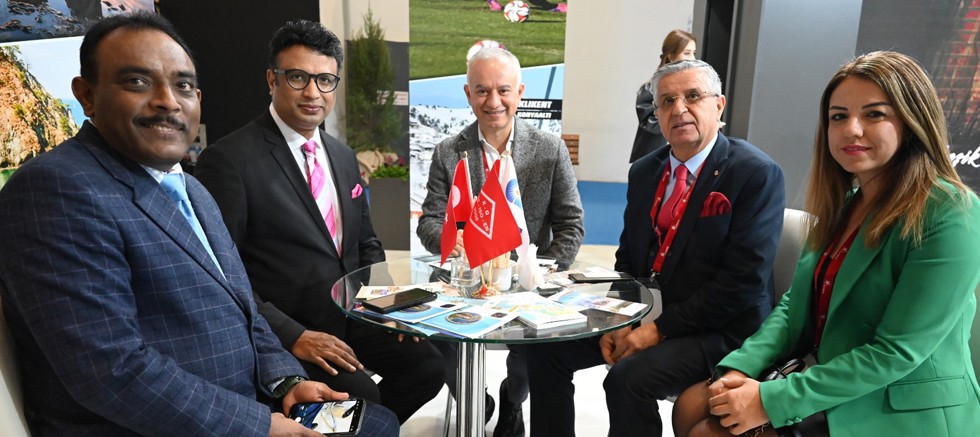 Universal Fedaration Of Travel Agents Association (UFTAA) Başkanı Sunil Kumar Rumalla, Travel Turkey İzmir Turizm Fuarı’nda Kemer standını ziyaret ederek, Kemer Belediye Başkanı Necati Topaloğlu’ndan Kemer hakkında bilgiler aldı
