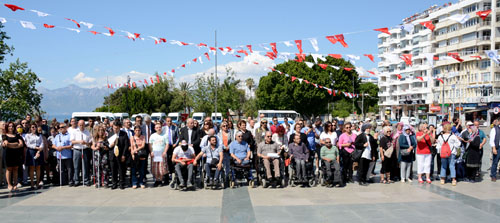 Antalya Kent Konseyi Engelliler Meclisi üyeleri, 10-16 Mayıs Engelliler Haftası kapsamında Cumhuriyet Meydanı’nda düzenlenen törene katılarak haklarını gündeme taşıdı. Törene Kent Konseyi temsilci ve üyeleri, Engelliler Meclisi üyeleri, kamu kurum ve kuruluşların temsilcileri, engelli ve özel bireyler ile aileleri katıldı. Atatürk Anıtı’na çelenk sunulmasıyla başlayan program saygı duruşunda bulunulması ve İstiklal Marşı’nın okunmasıyla devam etti. Günün anlam ve önemine ilişkin özel bireyler adına konuşan Kent Konseyi Engelliler Meclisi Başkan Yardımcısı ve Özel Sporcular Gençlik ve Spor Kulübü Başkanı Yasemin Yaraşır, “Bizim artık çözüm odaklı iş yapmamız gerekir. Sorunlar ortada. Antalya’da güzel şeyler yapılıyor ama yeterli değil. Bugünkü program bir kutlama değildir, bu bir sorunlara çözüm bulma haftasıdır” dedi.