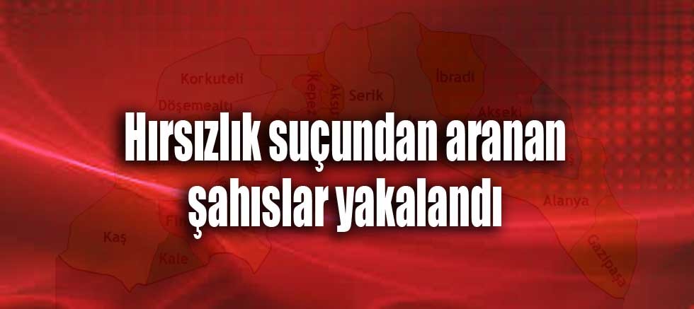 Antalya İl Jandarma Komutanlığı Asyş. Şb. Md'lüğü JASAT Timleri ile Kepez İlçe Jandarma Komutanlığı Merkez J.Krk.K.lığı Ekipleri tarafından yapılan müşterek inceleme ve araştırma neticesin de hırsızlık olaylarını gerçekleştiren şüphelilerin; 45 adet Hırsızlık, yağma vb. suç kaydı olup 5 yıldan beri 13 adet Hırsızlık suçundan aranmakta olan *A.E* ile 3 adet suç kaydı olan *M.D.* isimli şahıslar oldukları tespit edilerek, İl merkezinde ki adreslerinde yakalanmışlardır.