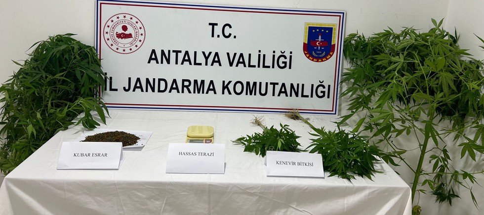 Antalya Valiliği İl Jandarma Komutanlığı ekiplerinin uyuşturucu madde imal ve ticaretine yönelik çalışmaları tüm hızıyla devam ediyor. Antalya’nın Finike ve Manavgat ilçelerinde şüpheli şahıslar tarafından yasa dışı kenevir ekiminin yapıldığı tespit edildi.  Antalya İl Jandarma Komutanlığına bağlı KOM Şube Müdürlüğü, İstihbarat Şube Müdürlüğü ile Finike ve Manavgat İlçe Jandarma Komutanlığı ekiplerince bir operasyon düzenlendi. Şüpheli şahısların ikametlerine yapılan aramada 16 kök kenevir bitkisi, 350 gram kubar esrar ve 1 adet hassas terazinin ele geçirildiği belirtildi.