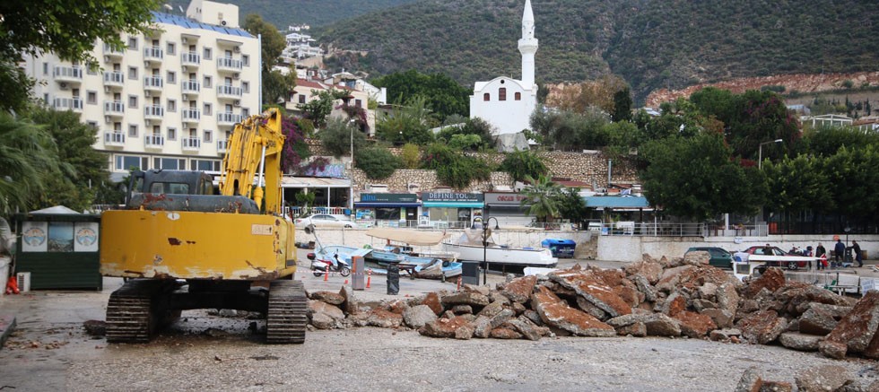 Antalya’nın Kaş ilçesi Kalkan Mahallesi’ndeki yat limanında zemin yenileme çalışması yapılıyor.