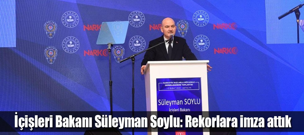 İçişleri Bakanı Süleyman Soylu, 2021 yılında uyuşturucu operasyonlarında Cumhuriyet tarihinin rekorlarını kırdıklarını ifade ederek; “Uyuşturucu ile mücadeleye yılmadan, yorulmadan devam ediyoruz. Uyuşturucuya bağlı ölümleri 941'den 314'e düşürdük 2021 senesinde sayılar 190'larda. Adli Tıp Kurumu'nun rakamları 3-4 ay geriden geliyor. Bu düşüş devam edecektir. 2016 yılında 88 bin uyuşturucu operasyonu gerçekleştirirken, 2021 yılında bunu 3 katına 217 bine çıkardık.  2021 yılında Cumhuriyet tarihi rekorlarını kırarak 22 ton 234 kilogram eroin, 2 ton 841 kilogram kokain ele geçirdik. 2021 yılında ayrıca 5 ton 518 kilogram metamfetamin, 8 milyon 454 bin 308 adet sentetik ecza ele geçirdik. Bunlar da Cumhuriyet tarihinin rekorlarıdır.” dedi.