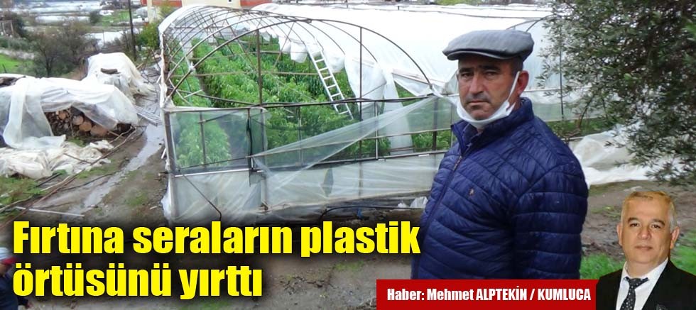 Kumluca İlçesi'nde, dün gece saat 24:00'ten bu yana etkili olan fırtına nedeniyle, birçok seranın plastik örtüsü yırtıldı.