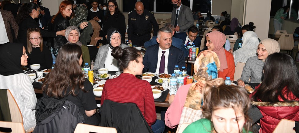 Vali Ersin Yazıcı, Muratpaşa Kız Öğrenci Yurdu’ndaki öğrencilerle iftar programında bir araya gelerek birlikte orucunu açtı. Gençlerle birlikte olmaktan son derece mutlu olduğunu ifade eden Vali Yazıcı; “Geleceğimizin teminatı gençlerimize, hayallerine uzanan yolda başarılar diliyorum.” dedi.