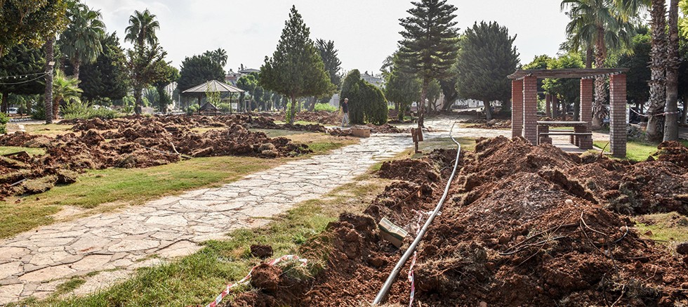 Tadilat kapsamında parkın sulama ve aydınlatma altyapı tesisatı yenileniyor.