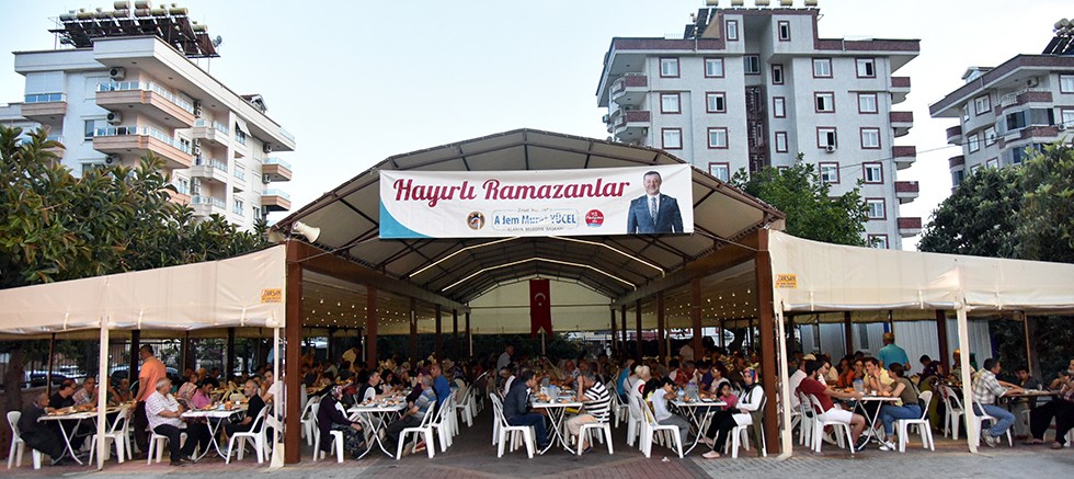 Belediye Başkanı Adem Murat Yücel, geçtiğimiz yıllarda olduğu gibi bu yıl da Alanya merkezde Eşgilik Düğün Salonu, doğuda Demirtaş ve Mahmutlar Düğün Salonları ve batıda Konaklı Bacoğlu İş Hanı ve Avsallar Düğün Salonu olmak üzere 5 noktada ihtiyaç sahiplerine iftar yemeği verdiklerini söyledi. Yücel, yemek programının Ramazan ayı boyunca sürdürüleceğini belirtti. Başkan Yücel, “Birlik beraberlik soframıza tüm vatandaşlarımız davetlidir” dedi.