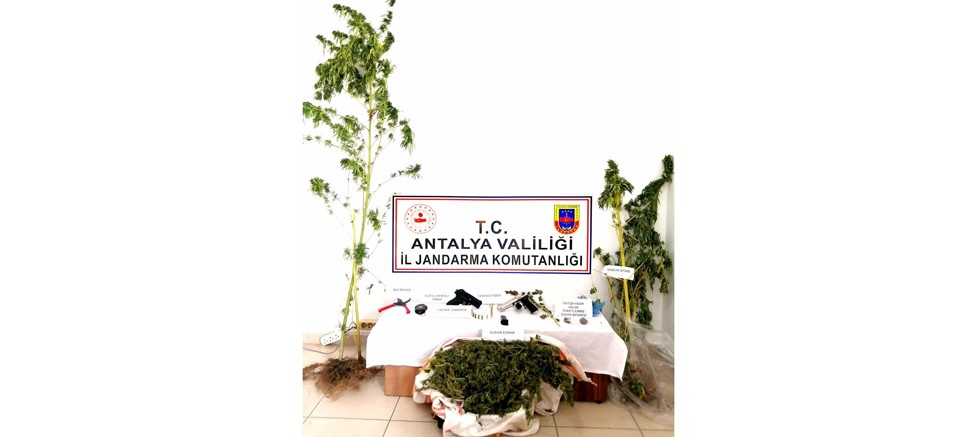 "Alanya Cumhuriyet Başsavcılığı talimatları doğrultusunda; Alanya İlçe Jandarma Komutanlığı tarafından B.T. isimli şahsın Deretürbelinas mahallesinde bulunan ikametinde kubar esrar maddesi bulundurduğu ve bahçesinde kenevir bitkisi yetiştirdiğinin tespit edilmesi üzerine şahsın ikametinde KOM takip timince yapılan aramada;