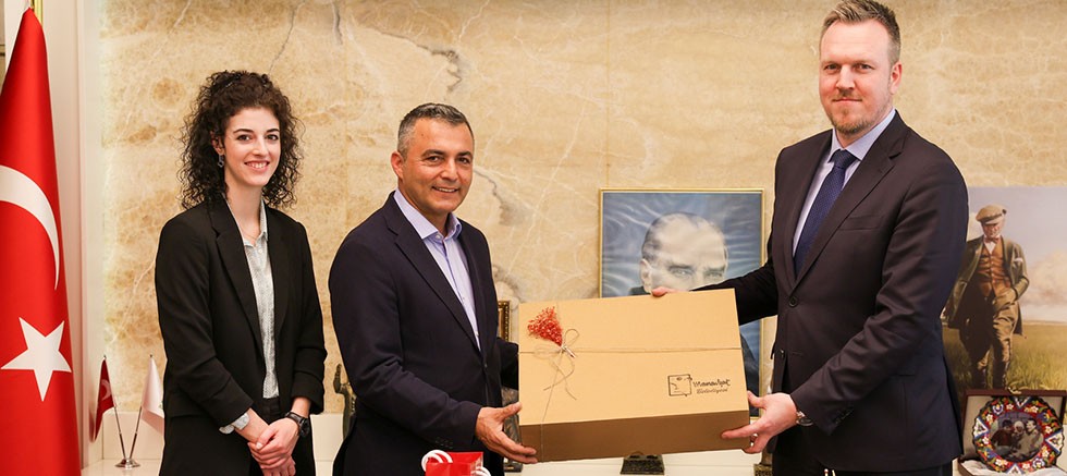 Manavgat Belediye Başkanı Kara, ziyaretin anısına Sollberger’e hediye takdiminde bulundu.