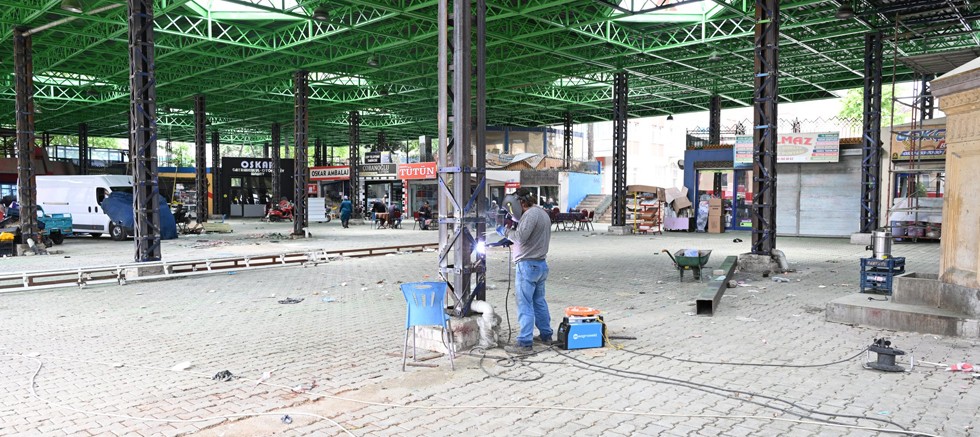 Çalışmalarda yapının kolonları ve makas sistemi güçlendiriliyor. Ayrıca çatı sisteminde ön boyama işlemi yapılıyor. Bu işlemin ardından güçlendirme kapsamında çatı sistemine makas sistemi uygulanacak ve tekrar boyama işlemi yapılacak. Bu çalışmalar tamamlandıktan sonra Yedişehitler Mahallesi Cuma Kapalı Pazaryeri’nin kilit parke taşı olan taban döşemeleri sökülecek ve yerine beton dökülecek. Kapalı pazaryerinin aydınlatmalarıyla ilgili de iyileştirmeler yapılıyor.