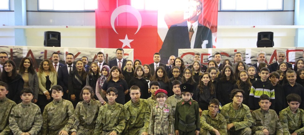 Atatürk İlkokulu Kapalı Spor Salonunda devam eden programda, saygı duruşu ve İstiklal Marşı’nın ardından günün anlam ve önemini belirten konuşma, Garnizon Komutanı Binbaşı Hüseyin Sadık tarafından yapıldı.