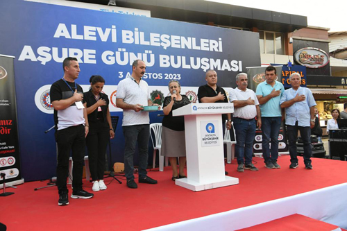 Kale Kapısı’nda düzenlenen Alevi Bileşenleri Aşure Günü Buluşması’na Vali Yazıcı’nın yanı sıra Antalya Milletvekilleri, Büyükşehir Belediye Başkanı Muhittin Böcek, İl Jandarma Komutanı Tuğgeneral Tarık Hekimoğlu, İl Emniyet Müdürü Orhan Çevik, Sahil Güvenlik Antalya Grup Komutanı Sg Binbaşı Tolga Coşkun, Hacı Bektaş Veli Anadolu Kültür Vakfı (HBVAKV) Antalya Şube Başkanı Nurettin Erdoğan, Sivil Toplum Kuruluşları Temsilcileri ve vatandaşlar katıldı.