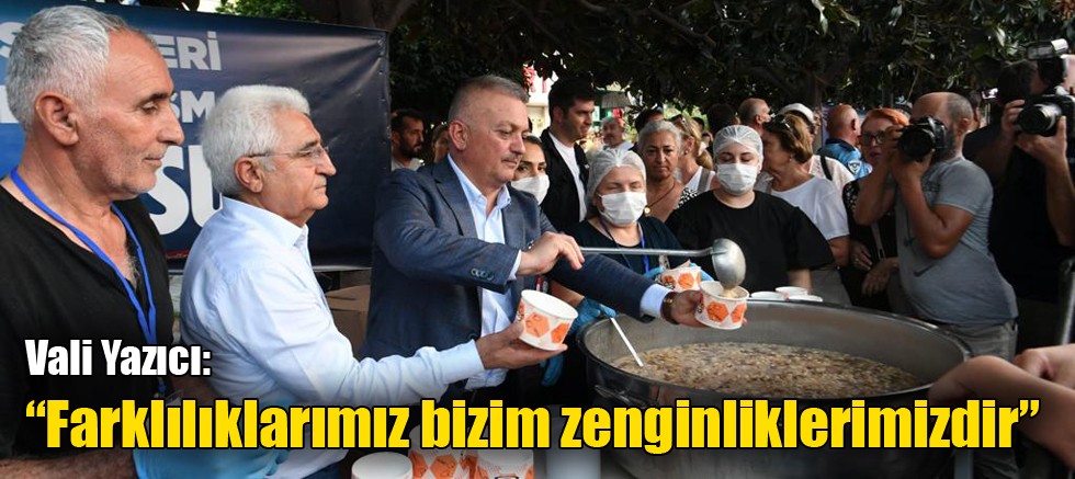 Alevi Bileşenleri Aşure Günü Buluşması’nda canlarla bir araya gelmekten dolayı mutlu olduğunu belirten Vali Yazıcı; “Bu güzel günde yüz yıllardır devam eden geleneğimizi yaşatmak, aşurenin güzelliğini ve aşurenin birleştirici yönünü öne çıkartmak adına bir aradayız. Bu ülkede farklı etnik kökenlerden, farklı inanç gruplarından insanlarla yüzyıllardır birlik ve beraberlik içerisinde yaşamaya devam ediyoruz. Allah’ın izniyle de beraber yaşamaya devam edeceğiz. Büyük Türk devletinin kutlu yolculuğunda el ele gönül gönüle kenetlenmiş bir şekilde dünyadaki varlığımızı sürdüreceğiz. Bize ait güzellikler ve gelenekler bu milletin büyüklüğünün en önemli kanıtıdır. Aşure, bizi bir araya getiren 85 milyona aynı şeyi düşündüren ve yüzyıllardır devam eden en önemli geleneklerimizdendir. Bu geleneği yaşatmaya sizin öncülüğünüzde devam edeceğiz. Bu büyük devlet, bundan sonra da bütün dünyaya varlığını kabul ettiren, sözüne itibar edilen bir millet olarak kıyamete kadar devam edecektir. Bizi bölmeye çalışan aramıza nifak sokmaya çalışan içeride ya da dışarıda kimseler olabilir. Ama büyük Türk milleti ne zaman kenetleneceğini ve ne zaman dik duracağını çok iyi bilir. Tarihimizde de bu örnekleri defalarca bütün dünyaya gösterdik. Biz, bir ve beraberiz.” ifadelerini kullandı.