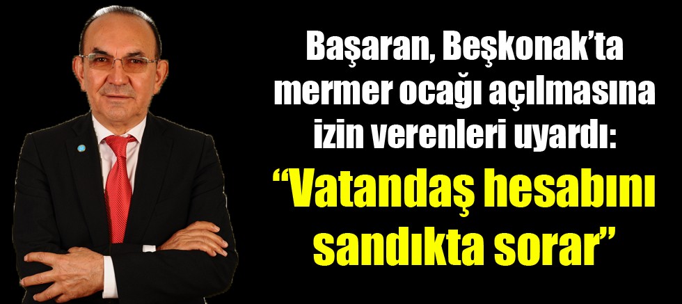 İYİ Parti İl Başkanı Mehmet Başaran, Manavgat’ın Beşkonak Köprülü Kanyon Kırkkavak Mahallesi’nde yapılmak istenen mermer ocağının bölgeye büyük zarar vereceğini belirterek, “Umuyorum bu vahim girişim, bölge halkının ve Antalya kamuoyunun kararlı iradesi ve desteğiyle önlenecektir. Aksi halde bölge halkı bunun hesabını seçim sandığında sorar” dedi