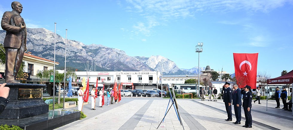 Kemer Cumhuriyet Meydanı’nda düzenlenen törene, Kemer Kaymakamı Ahmet Solmaz, Kemer Belediye Başkanı Necati Topaloğlu, Kemer Cumhuriyet Başsavcısı Gamze Almalı, Kemer Jandarma Komutanı Ömer Seyhan, Kemer Emniyet Müdürü Harun Mere, Kemer Sahil Güvenlik Komutanı Soner Tuna, gaziler ve şehit aileleri, siyasi parti temsilcileri, sivil toplum kuruluşlarının temsilcileri, öğretmenler ve öğrenciler katıldı.