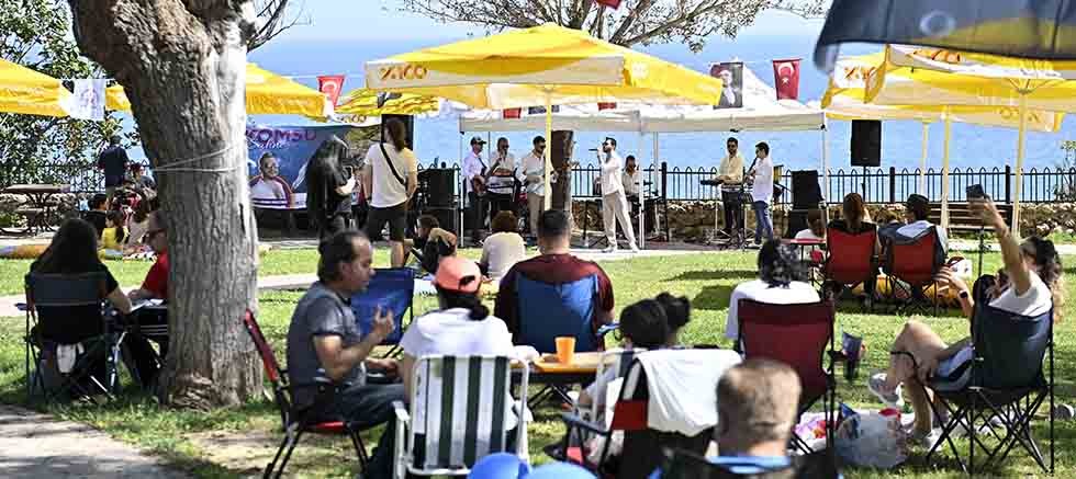 Antalya’da Muratpaşa Belediyesi, mavi ve yeşilin buluştuğu, doğal güzelliği ile kent sakinlerinin eşsiz manzaralı noktalarından Ziya Gökalp Parkı’nda ‘Komşu Sahne’ kurdu. Dinleyicilerin kamp sandalyeleri ve minderlere oturarak takip ettiği konserde keyifli dakikalar yaşandı.