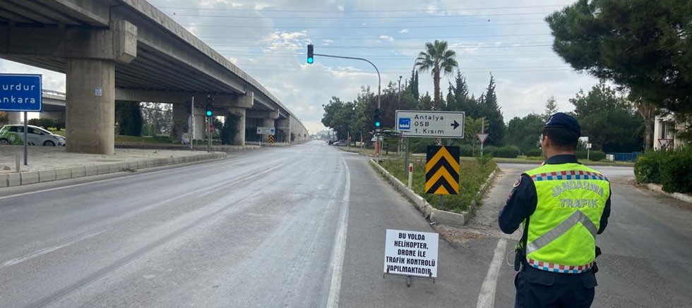Cumhurbaşkanlığı Karayolları Trafik Güvenliği Strateji Belgesi ve Eylem Planı kapsamında Antalya İl Jandarma Komutanlığı Trafik Şube Müdürlüğünce planlanan özel denetimde Trafik Jandarması Timleri tarafından Antalya genelinde drone ile havadan denetim yapılarak Sürücülerde algılanan Yakalanma riskini artırmak amaçlı Yapılan ihbarlı denetimlerde Kırmızı ışık İhlali yapan 48 sürücü, Şerit İhlali yapan 39 sürücü, Seyir halindeyken cep telefonu kullanan 107 sürücü, Emniyet kemeri kullanmayan 94 sürücü olmak üzere kurallara uymayan toplam 288 sürücü tespit edilerek haklarında cezai işlem uygulanmıştır.