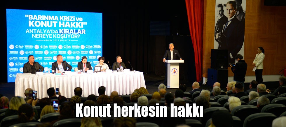 Muratpaşa Belediye Başkanı Ümit Uysal, “Barınma krizi ve konut hakkı – Antalya’da kiralar nereye koşuyor” başlıklı panelin açılışında sosyal politikalarda hak temelli bir yaklaşımın esas olduğunu belirterek, “Hak temelli yaklaşım bütün insanların konut hakkı, barınma hakkı olduğu gerçeğinden yola çıkar” dedi.