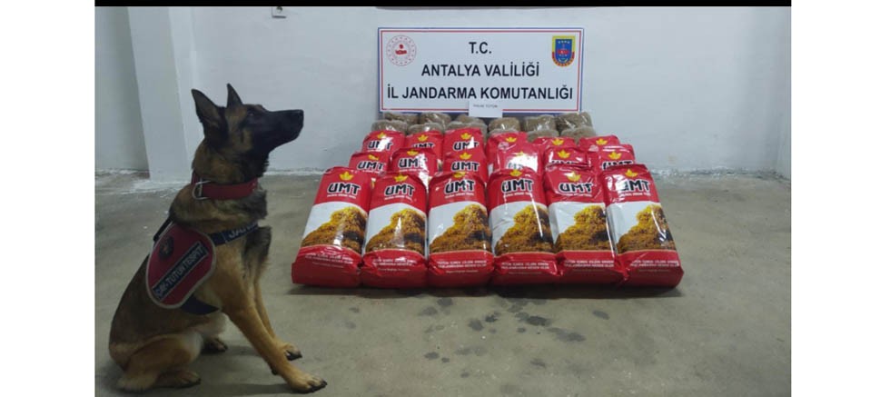 "Alanya Cumhuriyet Başsavcılığı talimatları doģrultusunda; Gazipaşa İlçe J.K.lığı Güney J.Krk.K.lığı Yol Kontrol Noktasında durdurulan yolcu otobüsünde çay ve tütün tespit köpeği ZARİF ile birlikte yapılan önleme aramasında otobüsün bagaj kısmında göz ile görülür şekilde;