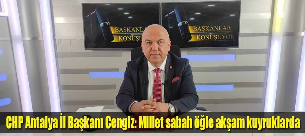 CHP Antalya İl Başkanı Nuri Cengiz, katıldığı bir TV programında soruları yanıtladı ve birtakım açıklamalarda bulundu. Genel ve yerel siyasete ilişkin açıklamalarda bulunan Başkan Cengiz, “Millet sabah ekmek, öğlen yağ, akşam akaryakıt kuyruğunda! Türkiye’yi bu darboğazdan çıkaracak olanlarsa bizleriz” dedi.
