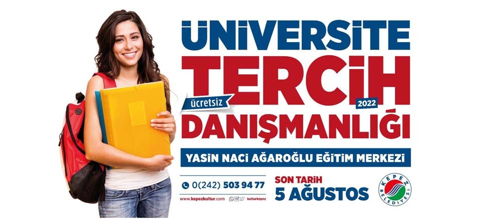 Kepez Belediyesi, üniversite adaylarına tercih danışmanlığı hizmeti veriyor. Yasin Naci Ağaroğlu Eğitim Merkezi’ndeki ücretsiz ‘Üniversite Tercih Danışmanlığı’ hizmeti 5 Ağustos’a kadar devam edecek. Eğitime büyük önem veren Kepez Belediyesi, üniversite tercih danışmanlığı hizmetiyle gençlerin doğru tercih yapmasını sağlıyor. Kepez Belediyesi’nin, 27 Temmuz’da başlayan ‘Üniversite Tercih Danışmanlığı’ hizmeti, 5 Ağustos’a kadar devam edecek. Yasin Naci Ağaroğlu Eğitim Merkezi’nde, uzman eğitimciler eşliğinde adayların tercihleri başarı sırası, puan ve üniversite kontenjanı kriterlerine göre yapılıyor. ‘Üniversite Tercih Danışmanlığı’ hizmeti 10.00 ile 17.00 saatleri arasında veriliyor. Üniversite Tercih Danışmanlığı hizmetinden yararlanmak isteyen adaylar, 0242 503 94 77 nolu telefondan istenilen bilgilere ulaşabilirler. Kepez Belediyesi, her yıl lise son sınıf ve yeni mezunlar için ücretsiz YKS hazırlık kurslarıyla da gençlere destek oluyor.