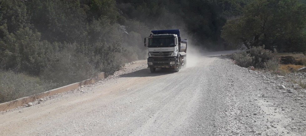 Antalya Büyükşehir Belediyesi Demre ilçesi Dirgenler grup yolunda asfalt hazırlık çalışması gerçekleştiriyor.