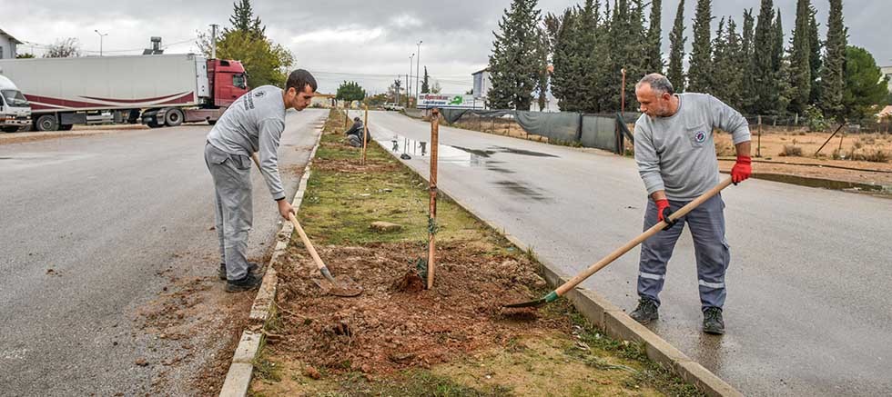 Müdürlük çalışanları, caddenin orta refüjünde Akdeniz Bölgesinin kadim ağaçlarından biri olan zeytini toprakla buluşturdu. Cadde, dikilen 50 adet zeytin ağacı ve 10 adet Benjamin ağacı fidanlarıyla yeşillendirildi.