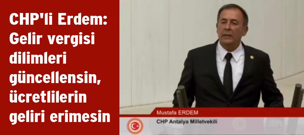 CHP Antalya Milletvekili Mustafa Erdem, vergilemede adalet ilkesi esas alınarak, gelir vergisi dilimlerinin günümüz ekonomik koşullarına ve mevcut gelirlere göre düzenlenmesi amacıyla verdiği kanun teklifi hakkında şunları söyledi: “Vergi yükü nedeniyle çalışanların gelirleri hızla eriyor. Çalışanlar bir yandan yüksek enflasyon bir yandan adaletsiz vergi ve kesinti yükü altında eziliyor. Gelir vergisi dilimlerinde düzenleme yapılmadıkça, ücretlere yapılan zamların da bir anlamı kalmamaktadır. Örneğin, geçtiğimiz Temmuz ayında alınan ücret zamları gelir vergisine gitti. O zaman TBMM Plan ve Bütçe Komisyonu’nda maaşlara yapılacak olan zamlar görüşülürken bizler, özellikle ana muhalefet olarak bunu dile getirdik ve yapılan zamların gelir vergisine gideceğini, gelir vergisi dilimlerinin de yapılan zamlara paralel olarak düzenlenmesi gerektiğini söyledik. Fakat takdir edersiniz ki bizi dinlemediler ve bu konuda hiçbir düzenleme yapılmadan kanun teklifi komisyondan geçti.”