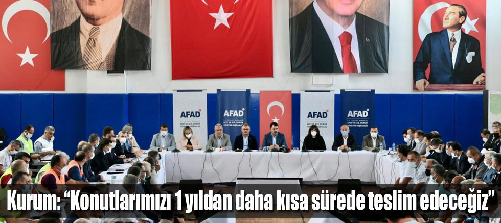 Toplantı sonrası açıklamalarda bulunana Çevre ve Şehircilik Bakanı Kurum, yaklaşık bir ay sonra yeniden bölgede bulunduğuna değinerek, yangın sürecinde ilgili kurumlarla bölgede yer aldıklarını, ihtiyaçların anında giderilmesi noktasında çalışmalar yaptıklarını anlattı. Bakanlık olarak hızlı şekilde hasar tespit çalışmalarını tamamladıklarını aktaran Çevre ve Şehircilik Bakanı Kurum, "Antalya ve Muğla'da 2 bin 516 bağımsız birimin acil ağır hasarlı ve yıkık olduğunun tespitini yaptık. Şu ana kadar Antalya ve Muğla'da 1100 binanın yıkım çalışmalarını tamamladık." dedi.
