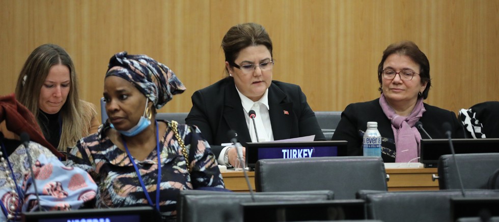 Bakan Derya Yanık, New York’ta gerçekleşen Birleşmiş Milletler (BM) Kadının Statüsü Komisyonu (KSK) 66’ncı oturumun “İklim Değişikliği, Çevre ve Afet Riskini Azaltma Politikaları ve Programları Bağlamında Kadın-Erkek Eşitliğini ve Tüm Kadın ve Kız Çocuklarının Güçlendirilmesini Sağlamak” başlıklı genel tartışmalar bölümünde bir konuşma gerçekleştirdi.